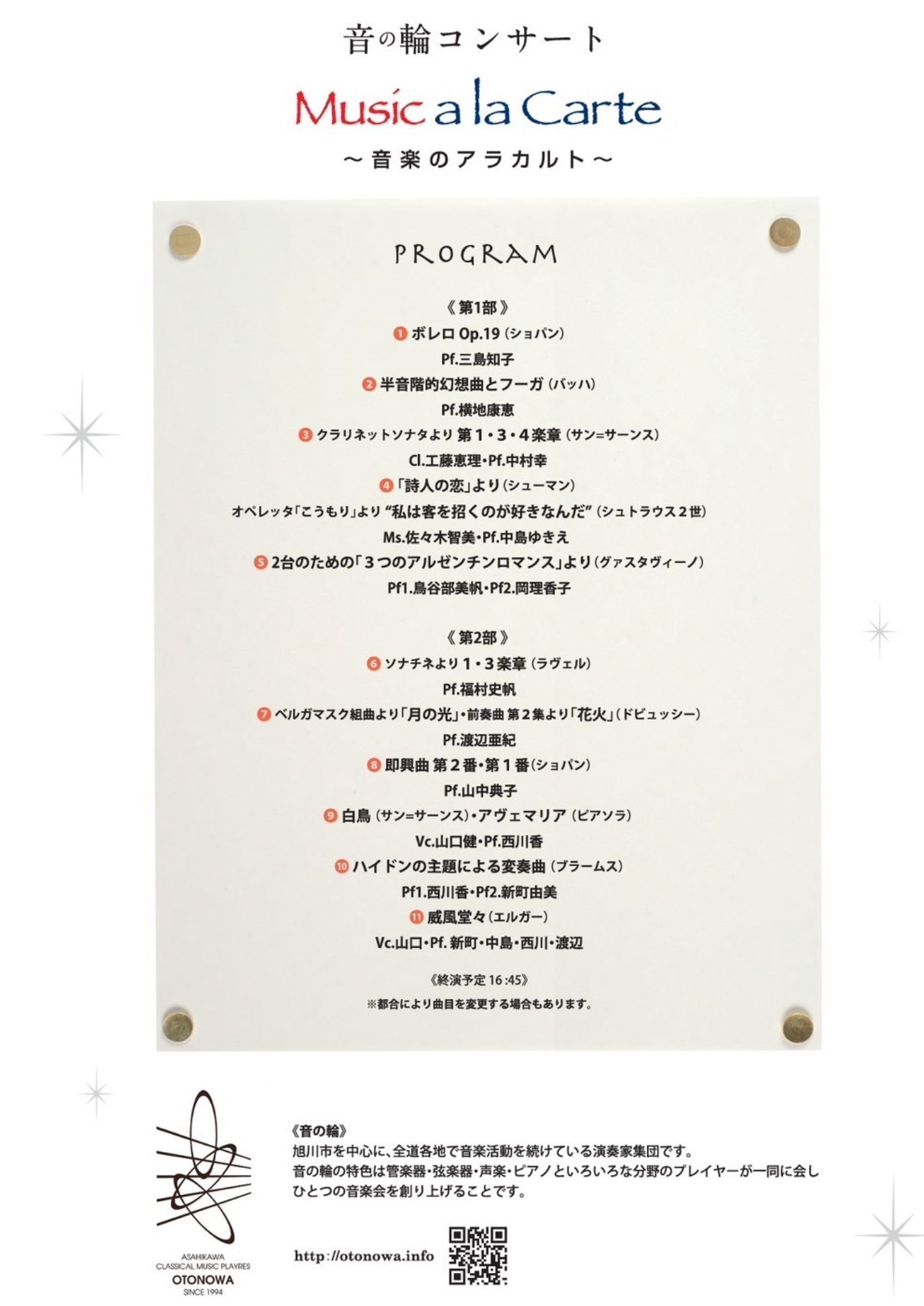 音の輪は昨年、旭川自主文化事業として『観て聴いて楽しい』コンサート音の輪ファンタジアを開催することができました。