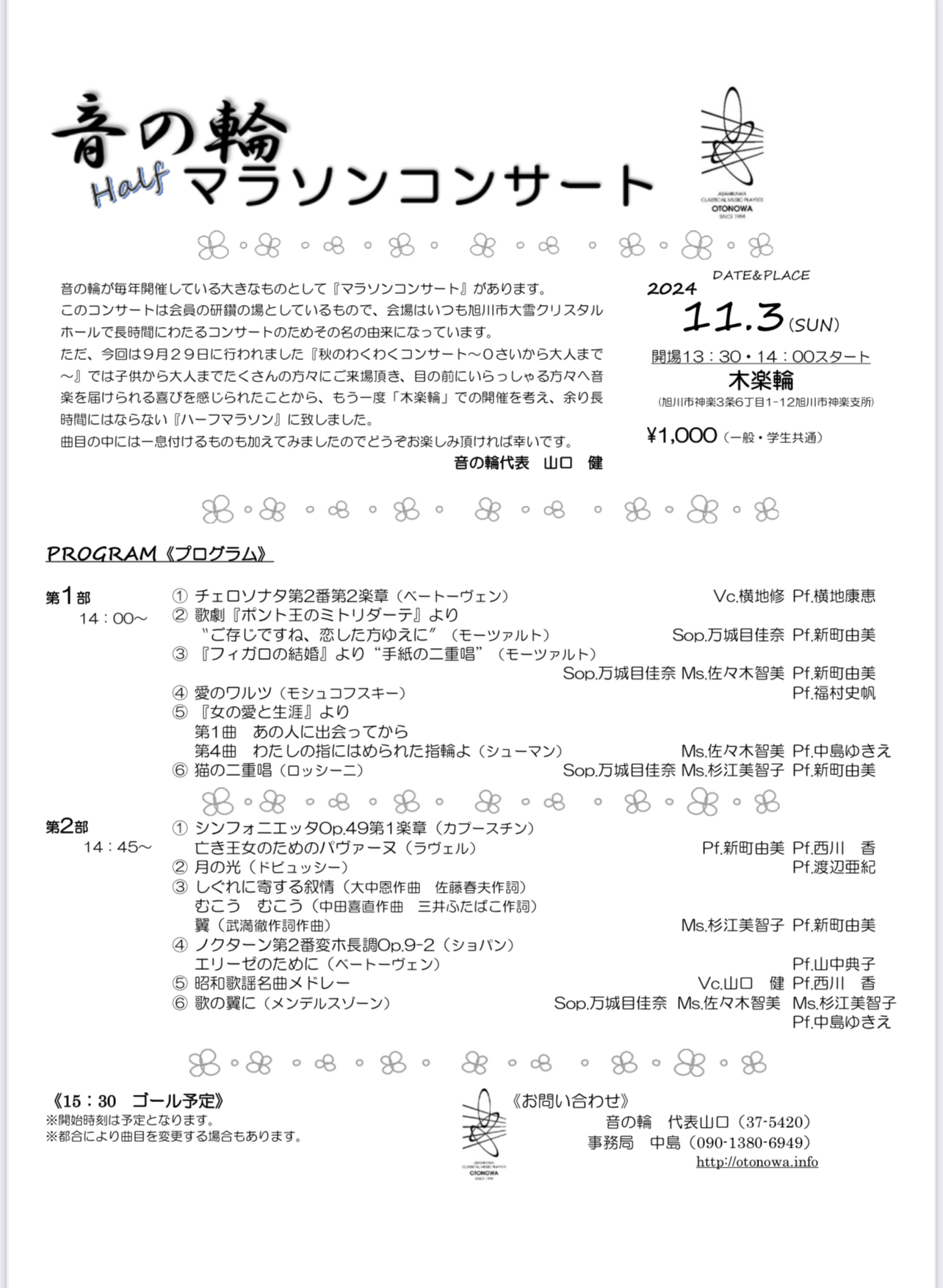 お問い合わせ:音の輪代表 山口(0166-37-5420)