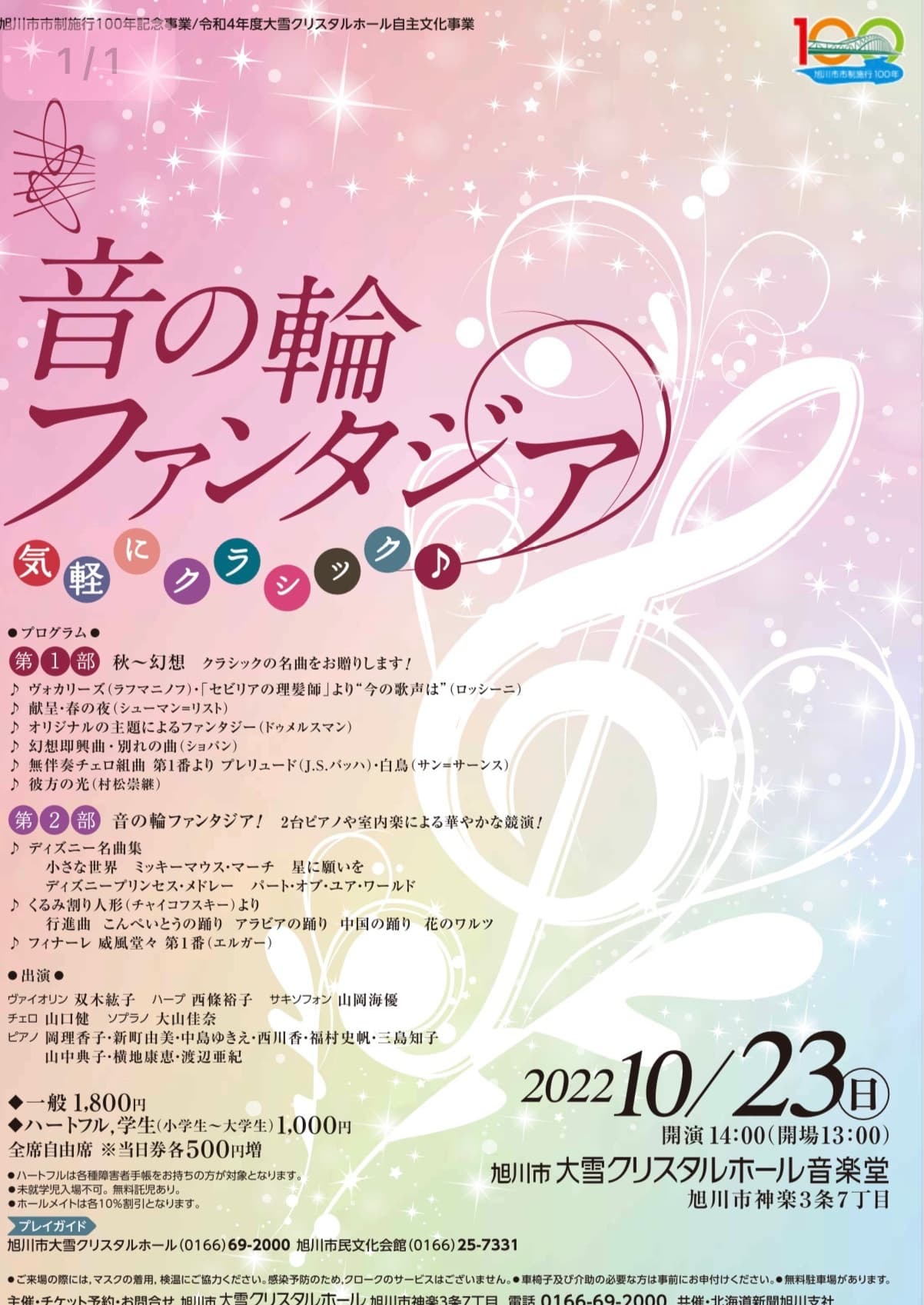 旭川市市制100年記念事業 大雪クリスタルホール自主文化事業 「音の輪ファンタジア~気軽にクラシック♪」(大雪クリスタルホール)